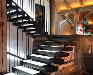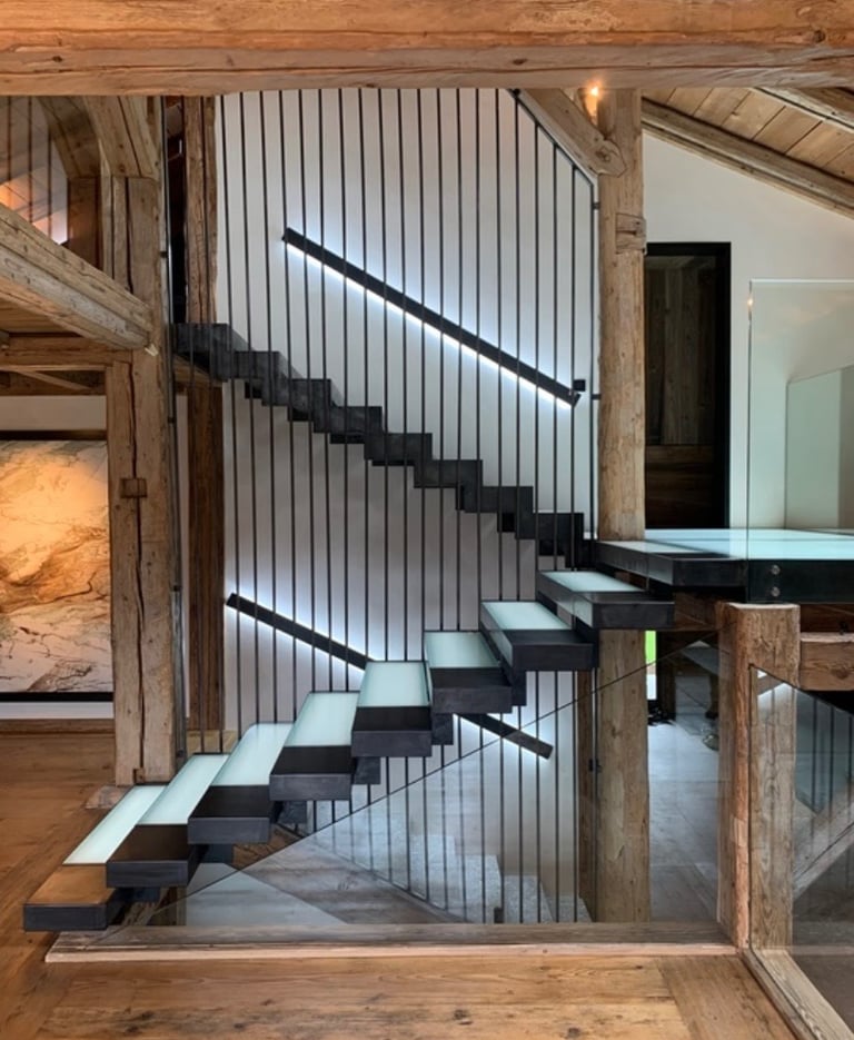 Dans ce chalet d’exception au Mont d’Arbois à Megève, l’élégance alpine se mêle à une approche contemporaine avec l’escalier métallique BUFFL. Véritable élément central de l’espace, il allie esthétique et fonctionnalité.