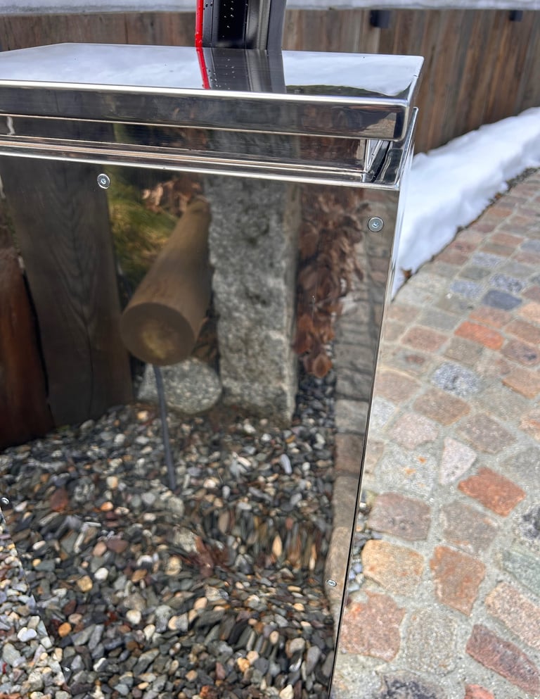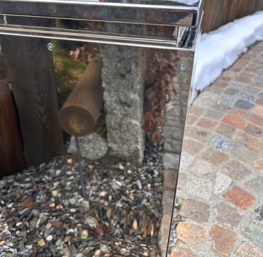 À l’extérieur, Prémices a également conçu le caisson de la barrière levante en acier poli miroir, assurant une continuité de qualité et de raffinement jusque dans les aménagements extérieurs.